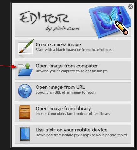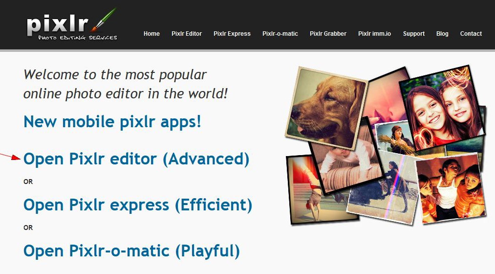 1. First, go to www.pixlr.com. You’ll see something like the image below. Click “Open Pixlr editor (Advanced.)”