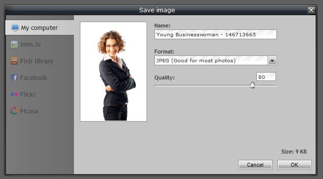 8. The following box will pop up. For Format, use JPEG; leave the Quality slider at 80. Click “OK.”