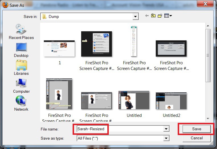 9. Next, select where you want to save the photo, and give it a file name that reflects that this photo is the resized version.